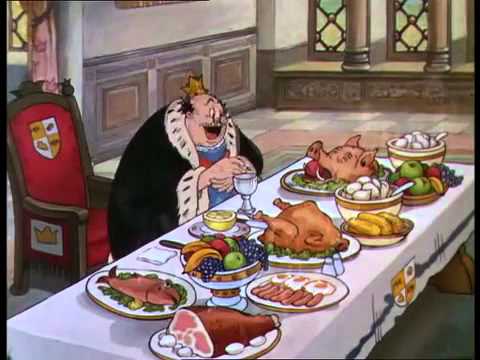 Al mediodía, la mesa gimió bajo el peso de todas las tartas, bocadillos, frutas y galletas que el rey codicioso estaba a punto de devorar. Para el té de la tarde, serían pasteles y algunos otros pasteles. ¡Pero la comida más importante del rey fue la cena! Los cocineros reales trabajaron la mayor parte del día para preparar esta fiesta. Cuando llegó el momento de comer, un sirviente tras otro traía grandes cuencos de sopa humeante, platos de pescado de todo tipo seguidos de enormes asados ​​y platos de verduras. Abajo, todo fue seguido de fruta y mermelada. Finalmente, el rey estaría satisfecho y se retiraría a su cama para pasar la noche.