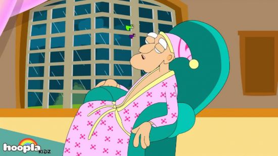 La rima comienza con “Está lloviendo, está lloviendo”, lo que sugiere que ya está lloviendo afuera. En la primera estrofa encontramos a un anciano. Este anciano ronca en su silla. Y cuando se despierta, se golpea la cabeza y se queda dormido. ¡A la mañana siguiente, el anciano no pudo despertar!
